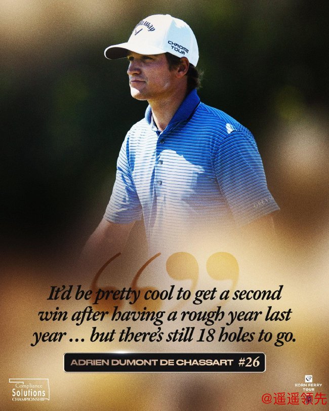 北京时间10月5日,阿德里安-杜蒙-德-查萨尔(Adrien Dumont de Chassart)在俄克拉荷马州奥瓦索爱国高尔夫俱乐部(The Patriot Golf Club)连续交出两轮61杆之后,本轮打出64杆,低于标准杆7杆,不仅继续领先光辉国际巡回赛第三场总决赛:合规解决方案锦标赛(Compliance Solutions Championship),而且将优势扩大到7杆。